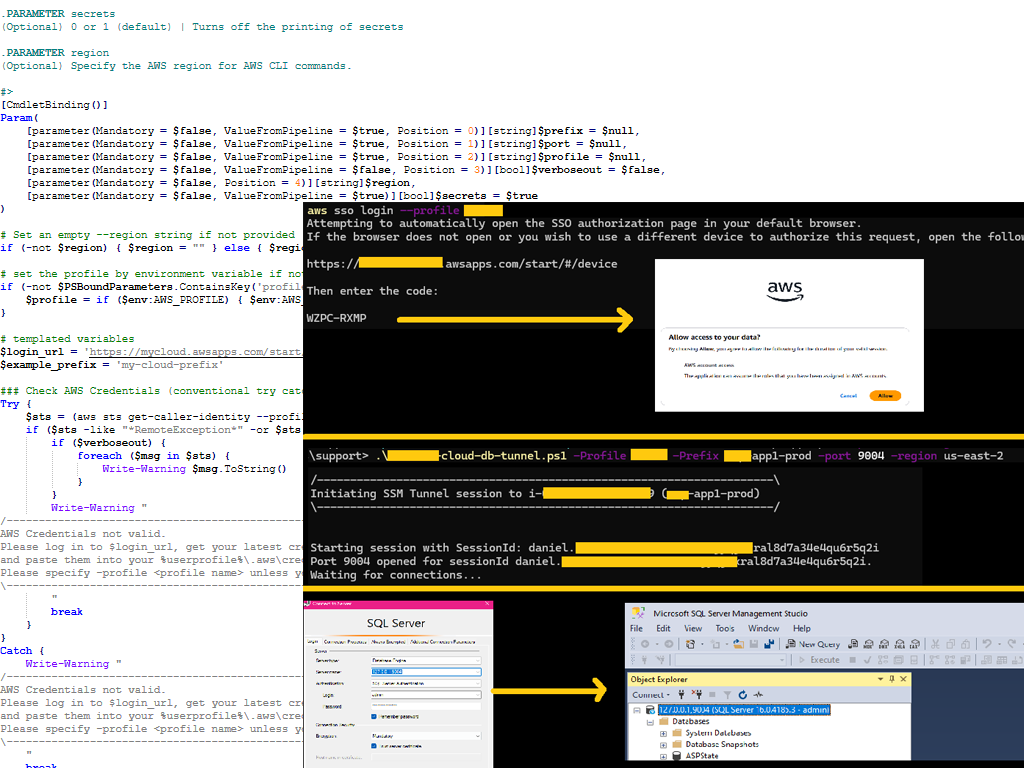Like this AWS RDS Database Server Tunnelling Script (PowerShell or Python)